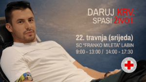 Crveni križ Labin obavještava o novom terminu nadolazeće akcije darivanja krvi u Labinu koja će se održati u srijedu, 22.4.2026., od 9,00 do 13,00 i