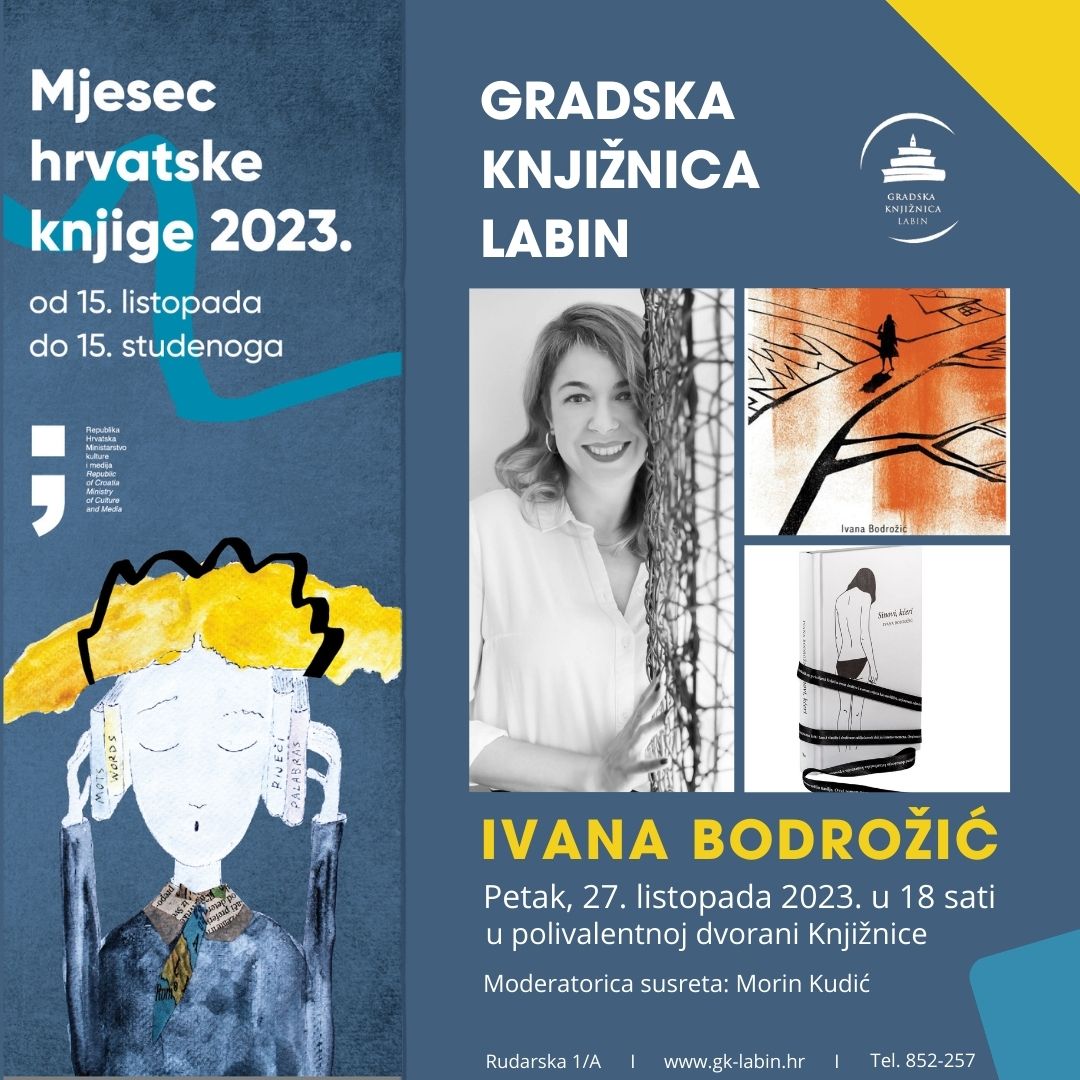 U okviru programa Mjeseca hrvatske knjige Gradska knjižnica Labinpriređuje književni susret sa spisateljicom i pjesnikinjom Ivanom Bodrožić koji će se održati u petak, 27. listopada s početkom u 18 sati.