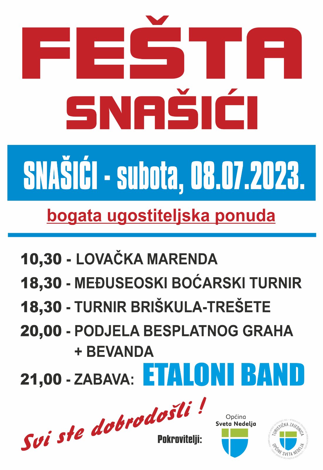 Ove subote, 8. srpnja u Snašićima se održava već tradicionalna fešta.