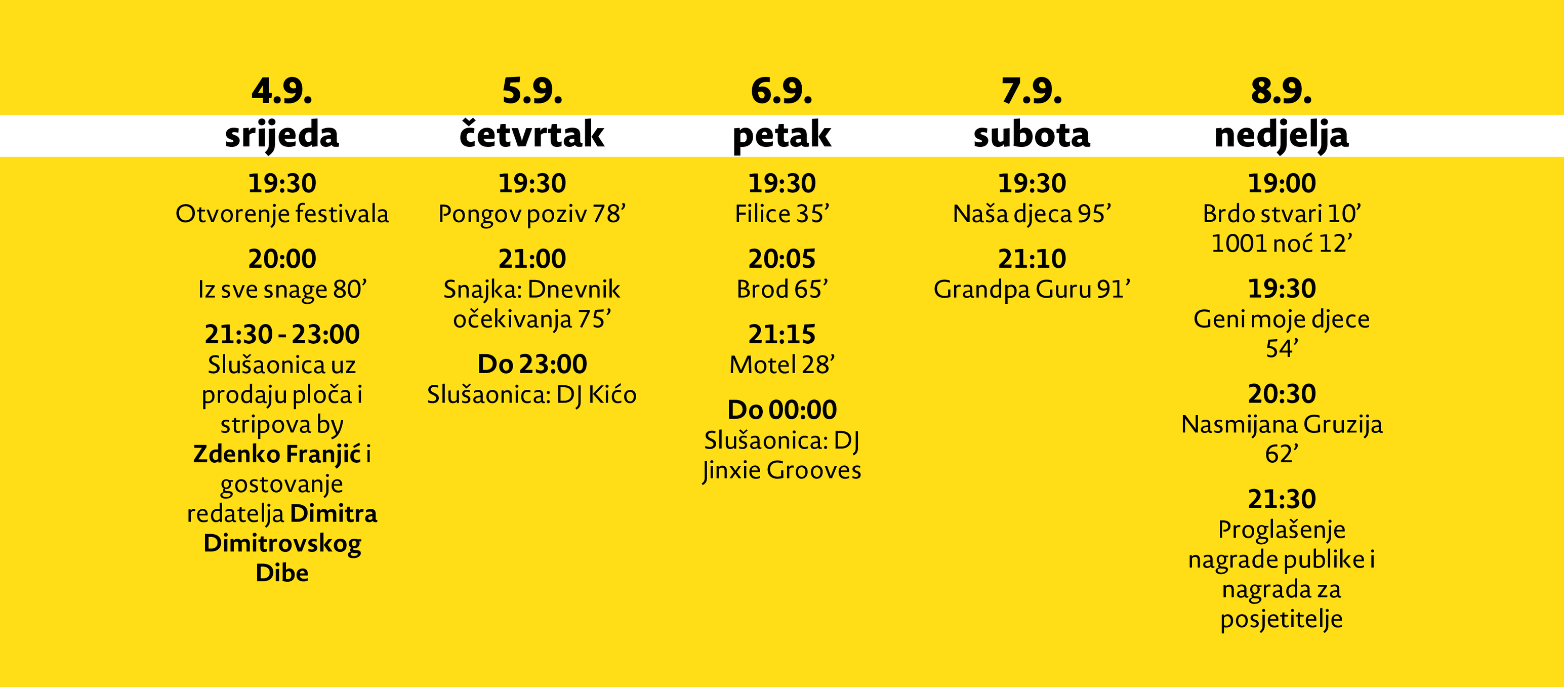 Ovogodišnji selektori pripremili su mnoštvo kratko i dugometražnih filmova. Kroz 5 dana održavanja, festival će prikazati ukupno 12 filmova.