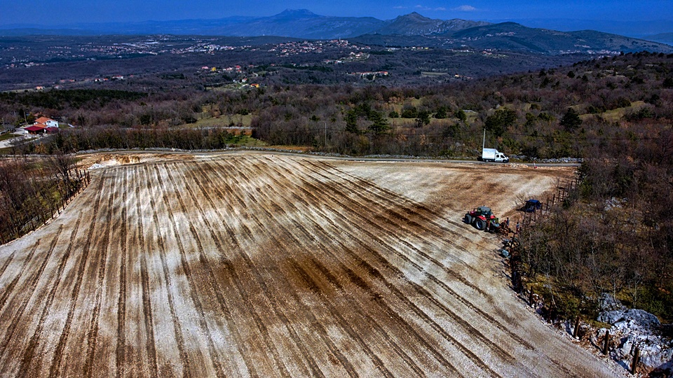 Dok gledamo u prostor gdje su utrošeni sati i sati rada, Juričić nam otkriva kako se nalazimo na 400 metara nadmorske visine, a za pripremu terena za sadnju, bila je potrebna veća i dugoročna priprema.