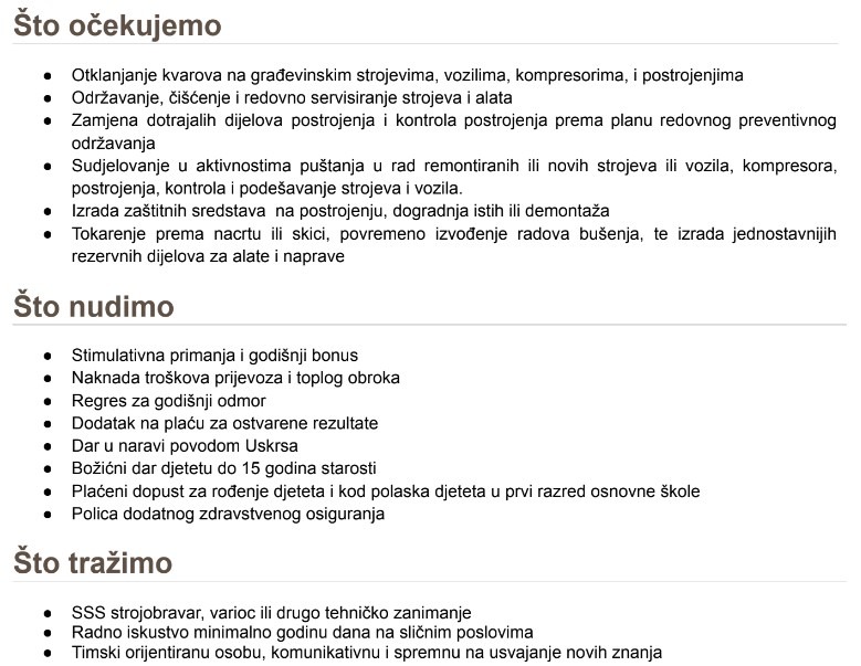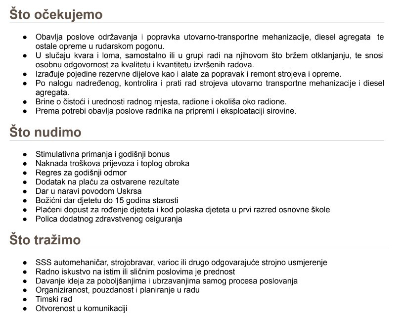 MEHANIČAR (m/ž/n) – Kamenolom Šumber