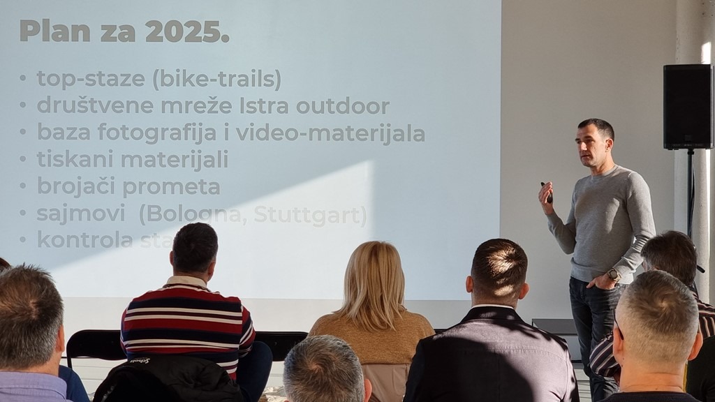 Nakon uvodnih riječi, uslijedila su predavanja, a uvodni dio i predstavljanje aktivnosti odjela Istra Bike & Outdoor održao je Martin Čotar iz Istarske razvojne turističke agencije. Istaknuo je pregled stanja na terenu za 2024. godinu te ključne aktivnosti plana za sljedeću godinu te naglasio sljedeće: “Razvoj outdoor destinacije mora se temeljiti na zajedničkom radu svih partnera u Istri. Samo tako možemo imati kvalitetnu i konkurentnu ponudu na tržištu. To se posebno odnosi na održavanje infrastrukture (staza) i pravilnu primjenu destinacijskih standarda. Važno je također uskladiti destinacijsko upravljanje kako bi se postiglo najbolje pozicioniranje na karti kao jedan od najkvalitetnijih outdoor segmenata, osiguravajući da se Istra ističe kao vodeća destinacija za outdoor turizam.”