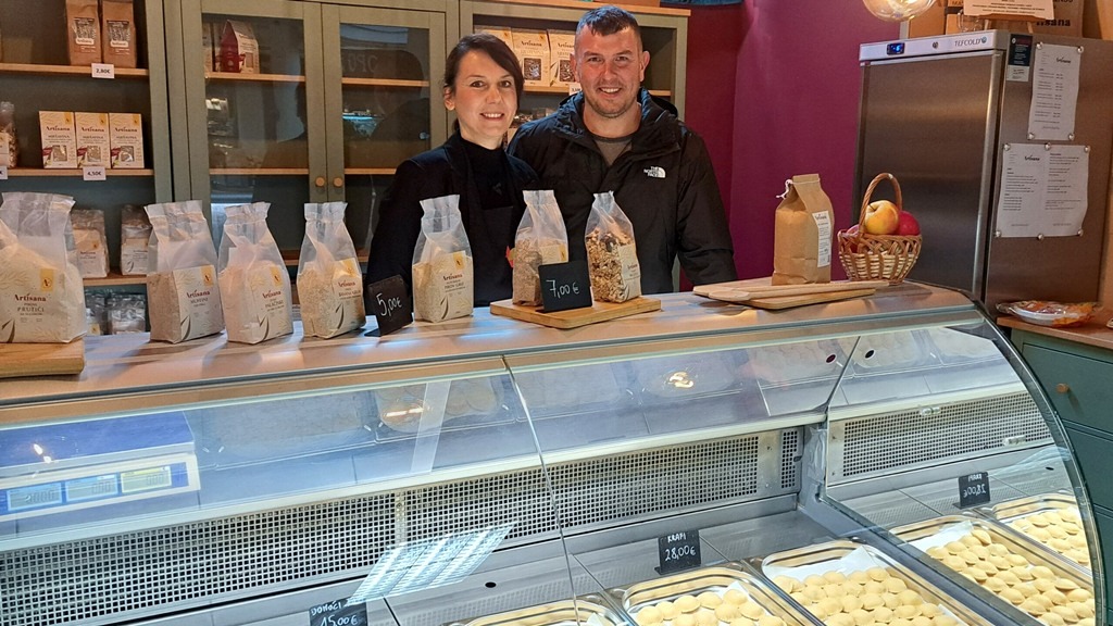“Odlučili smo otvoriti trgovinu na tržnici jer vjerujemo u snagu lokalne zajednice i izravan kontakt s kupcima. Smatram da je upravo ovakva ponuda ono što nedostaje na Labinštini jer će se kod nas moći kupiti svježe i smrznute ručno rađene domaće tjestenine kao što su fuži, krafi, pljukanci, sve napravljeno od našeg brašna. U našoj ponudi biti će i brašno iz kamenog mlina od naših žitarica, zdrave mješavine, integralne sušene tjestenine, ali i razni zanimljivi poklon paketi.” – kaže nositelj OPG-a Danijel Carić.