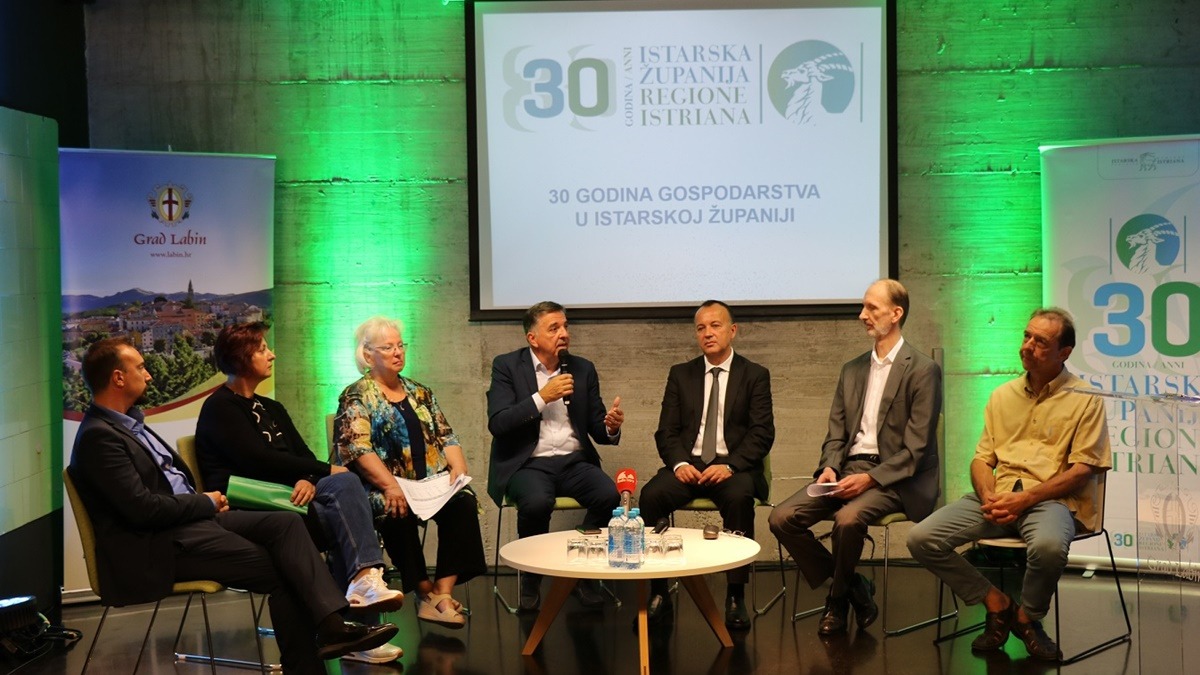 Povodom obilježavanja 30. godišnjice svog postojanja, Istarska županija organizira niz tematskih panel rasprava, a danas je održana ona posvećena gospodarstvu u Labinu. Na početku događaja, prisutnima su se obratili zamjenik župana Istarske županije Tulio Demetlika te gradonačelnik Grada Labina Valter Glavičić.