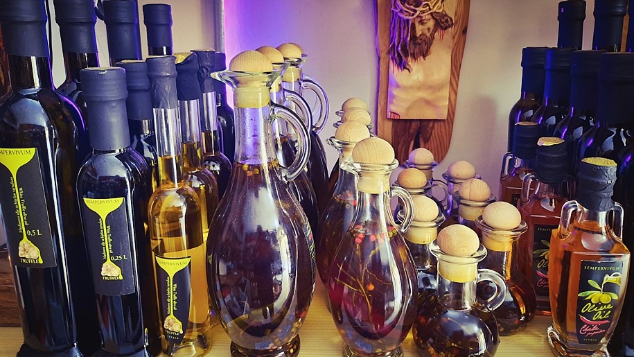 Ima tu zaista svega – od istarskih rakija, likera, vrhunskih ginova, vina, preko maslinovih ulja, viskija, proizvoda od lavande, sve do meda, džemova, čokolada, soli, poklona, magneta i suvenira te proizvoda od maslinovog drveta i tirkiza.