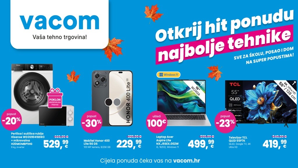 Jesenski katalog vrijedi do 19. listopada 2025. ili do isteka zaliha, a nudi i mogućnost kupnje uz do 24 rate bez kamata i naknada, besplatnu dostavu u Vacom trgovine te stručnu podršku prodajnog tima.
