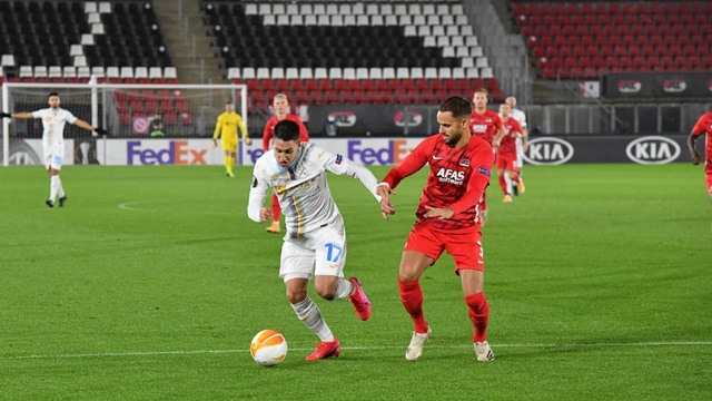 AZ je već u šestoj minuti uspio otključati vrata Rijeke. Jedna duga lopta u kazneni prostor Rijeke, de Wit se zavukao iza leđa Velkovskom i pao nakon kontakta s braničem Rijeke. Ivanov je pokazao na bijelu točku.