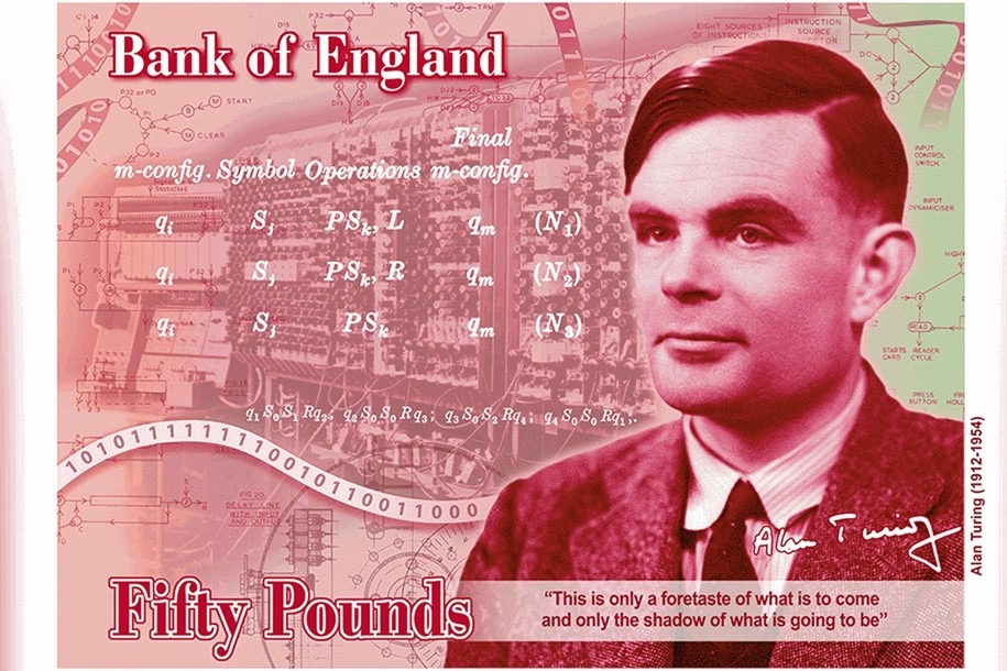 2019. Britanska središnja banka odlučila je da će novčanica od 50 funti biti posvećena Alan Turingu, ocu kompjuterske znanosti i umjetne inteligencije, ratnom junaku i znanstvenom divu na čija se leđa naslanjaju mnogi. Na rijetko korištenoj, novčanici sa najvišom nominalnom vrijednošću je uz Turingov lik i Turingovu formulu, prvo računalo i skicu stroja korištenog za razbijanje Enigmina koda, i ova Turingova rečenica: “Ovo je tek početak – sjena onog što nas čeka u budućnosti”.
