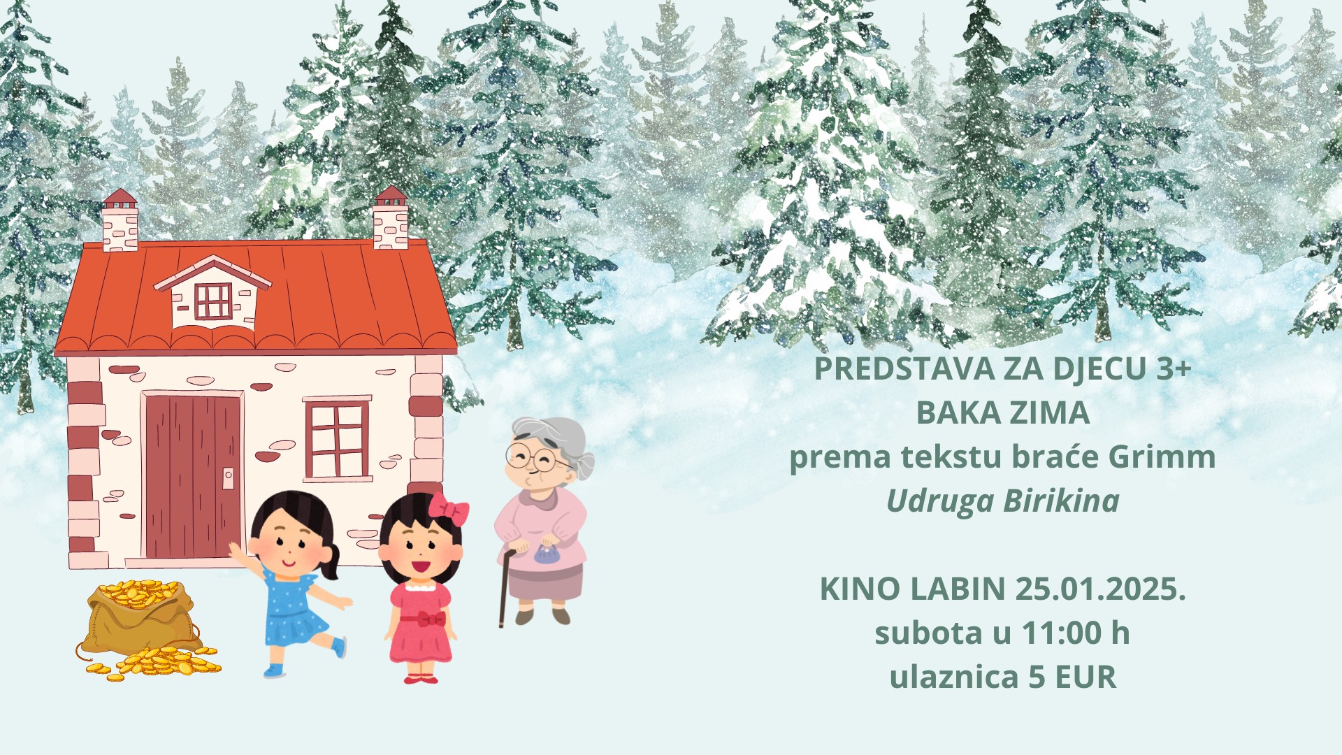 Iz Kina Labin poručuju: “Za vrijeme hladnog siječnja, pozivamo vas da se utoplite dolaskom na predstavu “Baka Zima”!