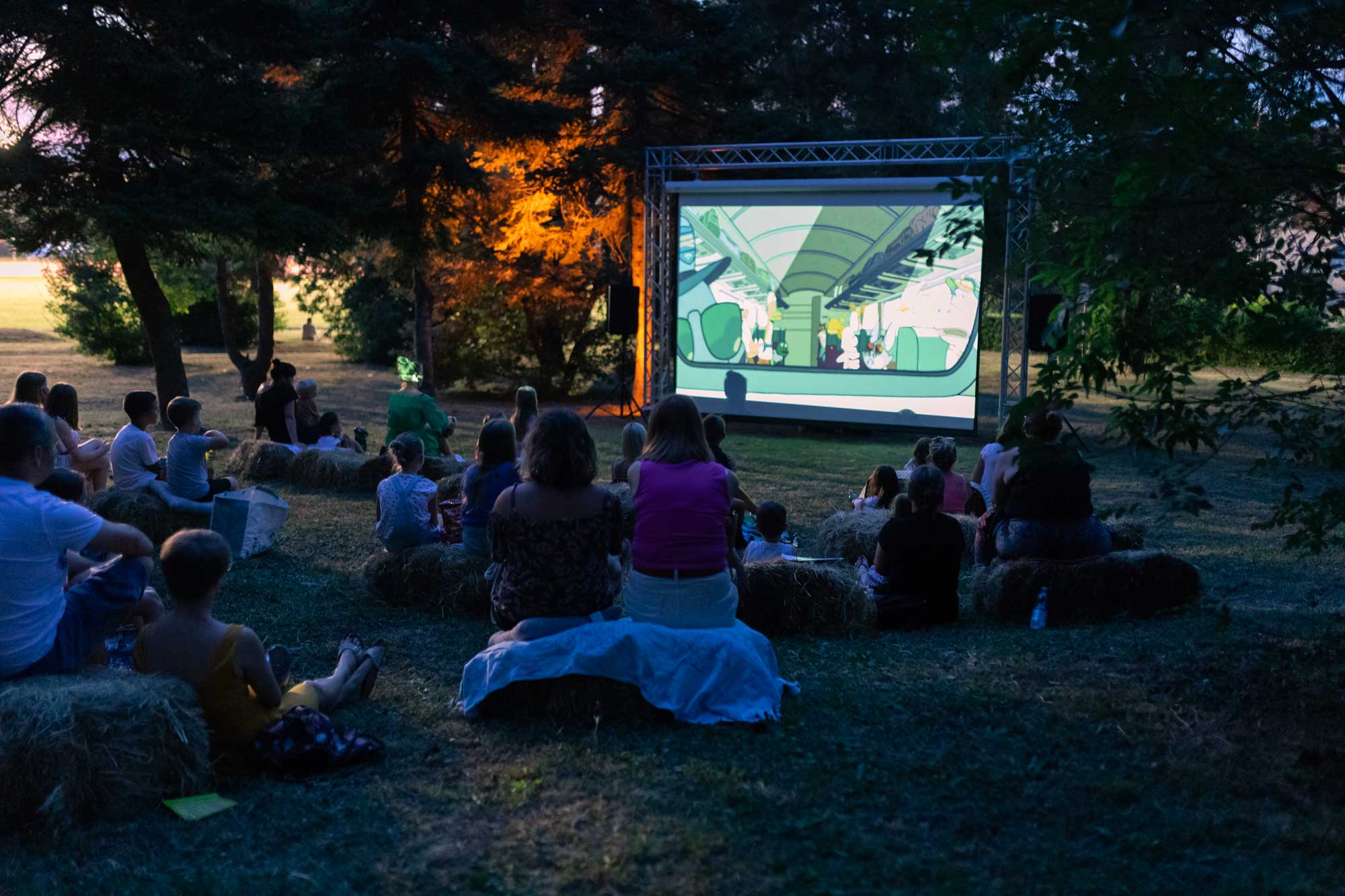 Ljeto kino na otvorenom u parku kraj skulpture Matije Vlačića Ilirika
