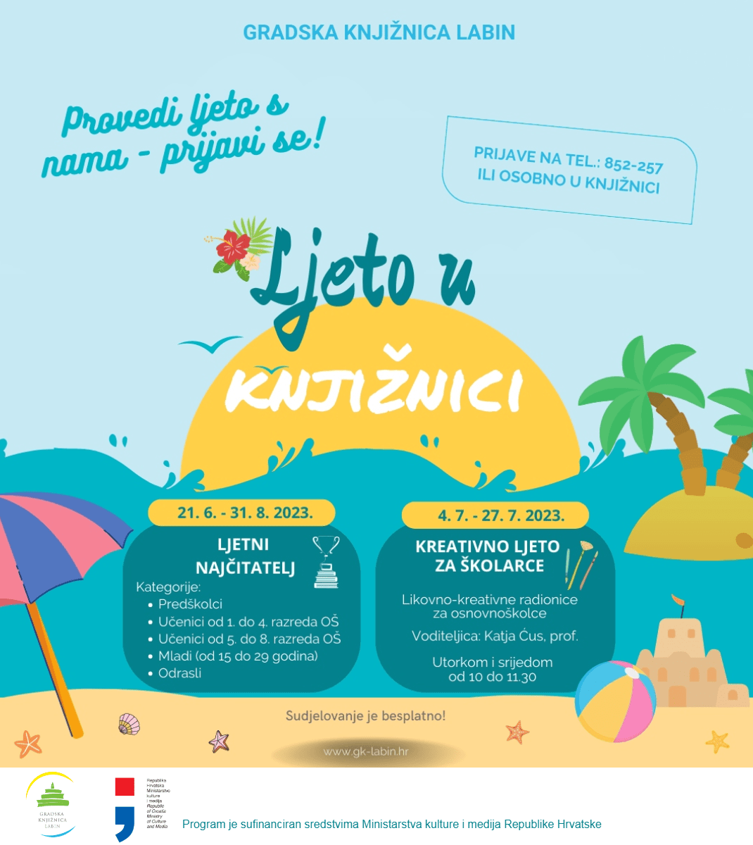 Program „Ljeto u knjižnici“ sufinanciran je sredstvima Ministarstva kulture i medija Republike Hrvatske.
