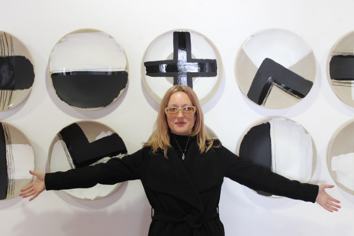 Kasnije se autorica odlučila za radikalnu promjenu slikarske površine i kvadratičnost platna zamijenila je konkavno-kružnim površinama koje kolokvijalno naziva „tanjuri“. Spektar boja i repertoar apstraktnih oblika (mekani kvadrati, debele linije boje, krugovi i crte izvedene ugljenom ili drškom kista) ostao je sličan i vizualno vrlo jasan. Slikanjem na „tanjurima“ autorica kao da nam govori o gledanju kao posebnoj vrsti gladi, izjednačavajući otvorene kapke s razjapljenom vilicom. Dok gledamo mi, zapravo, jedemo svijet.“ (Iz predgovora kataloga izložbe; Damir Stojnić)