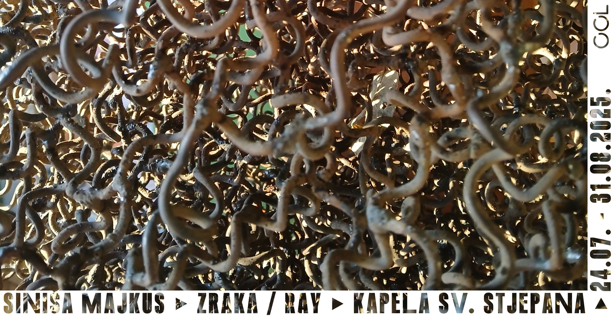 Gradska galerija Labin predstavlja novu izložbu kipara Siniše Majkusa u kapeli sv. Stjepana naziva Zraka. U ambijentalnom dijalogu s baroknim prostorom bit će po prvi put izložena njegova monumentalna skulptura iz recentnog ciklusa. Djelo izdužene stožaste forme, izrađeno od guste varene žice, nastavlja autorovu prepoznatljivu poetiku prostornih crteža, u kojoj svjetlost i materija ostvaruju sugestivnu igru sjena i zraka, kako kustos izložbe Mladen Lučić navodi. Izložba će se otvoriti u četvrtak, 24. srpnja 2025., u 20.30 sati.