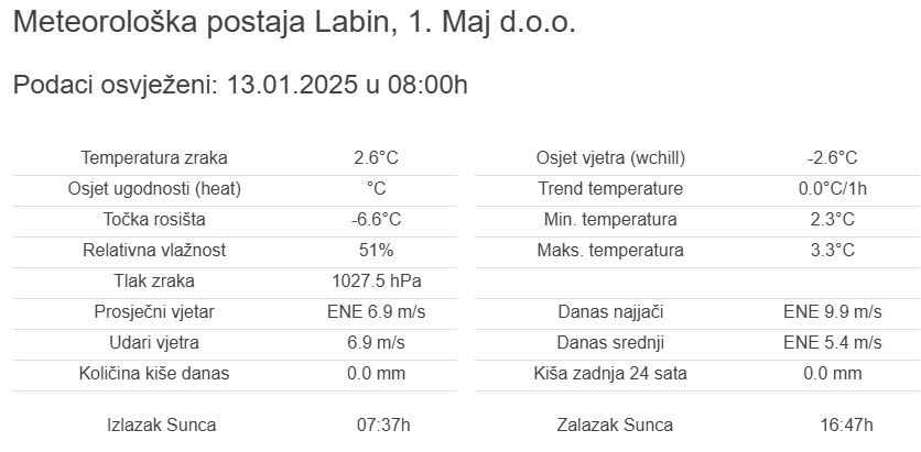 Naime, podatke sa stanice može se očitati na web stranicama Istrameta.