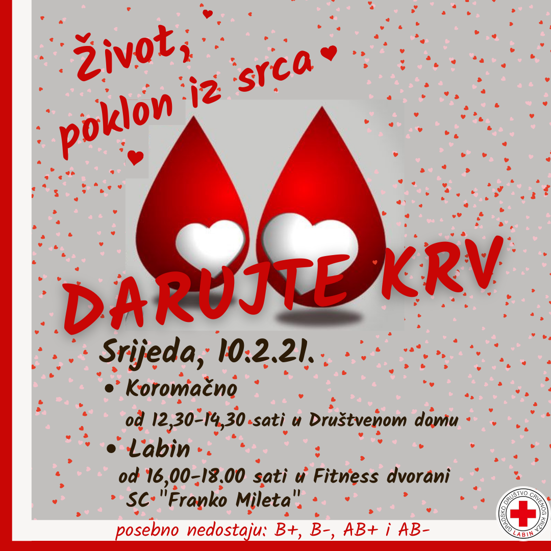 Gradsko društvo Crvenog križa Labin organizira još jednu akciju darivanja krvi, i to u Labinu i Koromačnu.