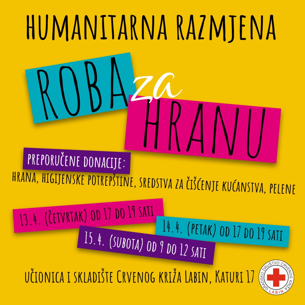 Za količinu preuzete robe nema ograničenja, a zauzvrat Crveni križ Labin moli donaciju u hrani, higijenskim potrepštinama, sredstvima za čišćenje, pelenama ili novčanu donaciju kojom će kupiti namirnice za svoju socijalnu samoposlugu.