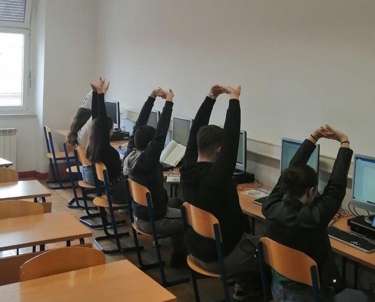 U nastavku možete pogledati video uradak „Razgibaj se pa tipkaj“ u kojem učenici 1. d razreda demonstriraju naučene vježbe razgibavanja. Video su izradili maturanti ekonomskog usmjerenja i Mihael Petrović, učenik 3.f razreda. Prikazanim vježbama potiče se cirkulacija vratne kralježnice te razgibavaju mišići ruku, ramenog pojasa i šaka.
