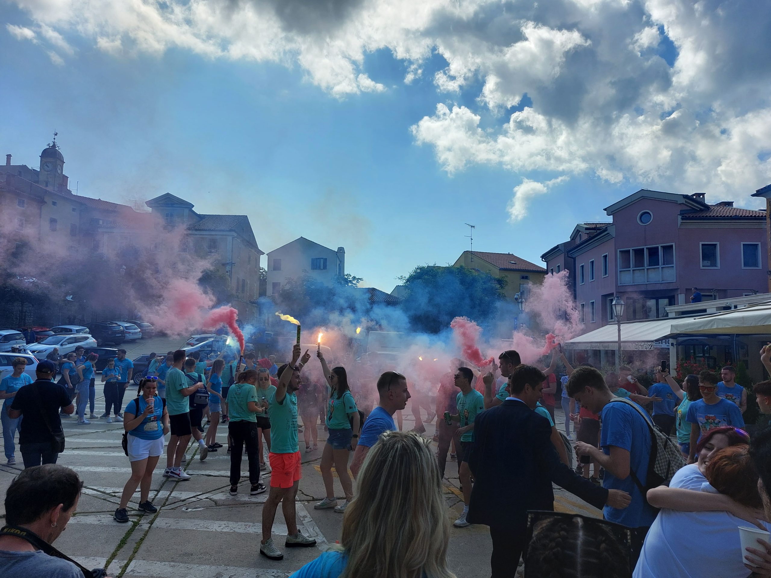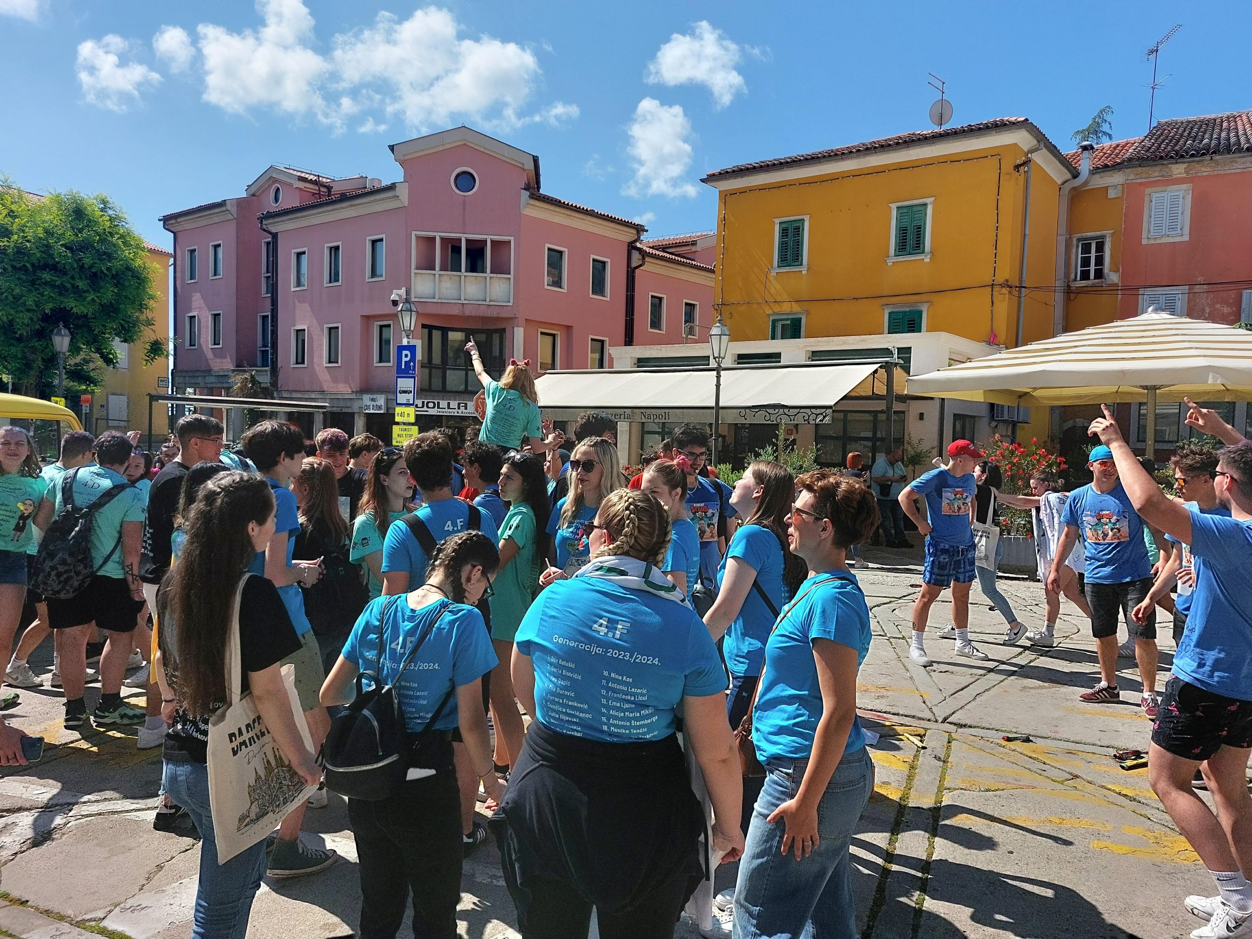 Maturanti Srednje škole Mate Blažine Labin, njih 123, danas slavi svoj dan, posljednji dan srednjoškolskog obrazovanja. Kao i brojne generacije prije njih okupili su se ispred škole, a potom nastavili uz pjesmu svoj mimohod kroz središte grada zajedno sa svojim razrednicima.