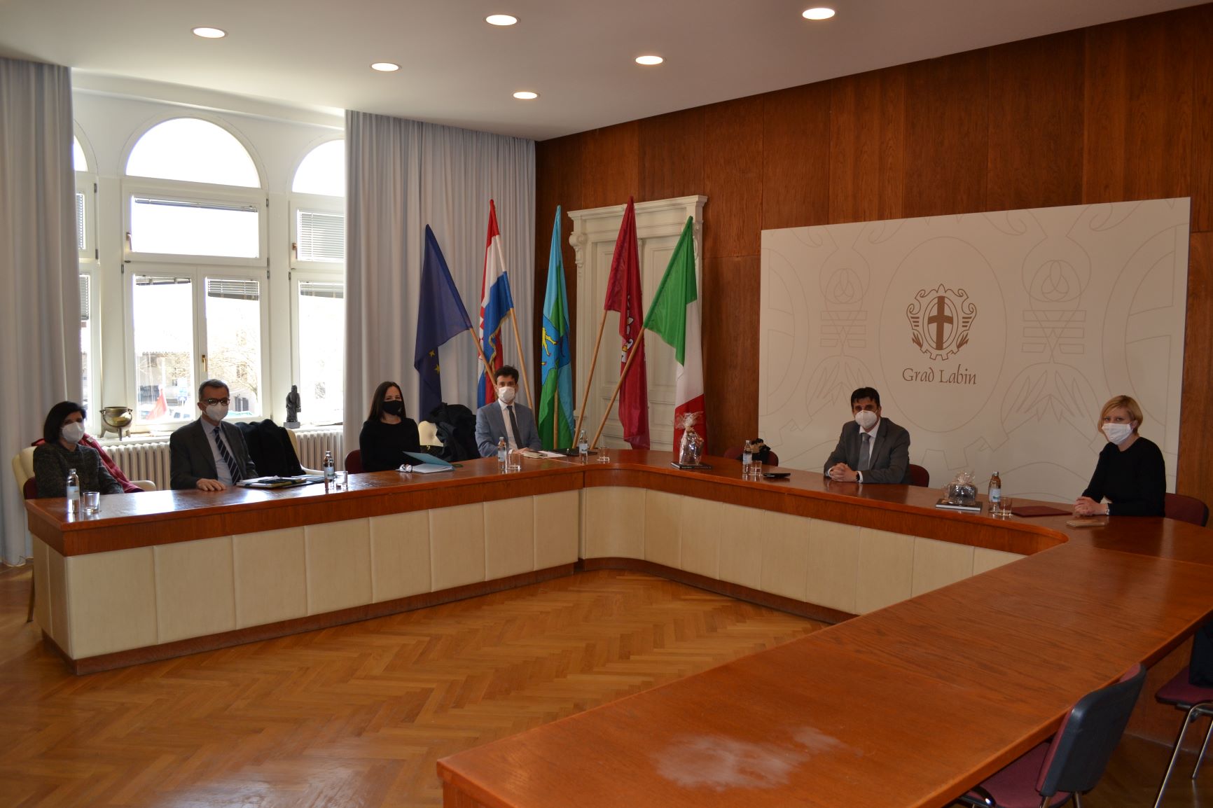 Uz riječi dobrodošlice, upoznali su veleposlanika s bogatom poviješću našeg grada, posebice industrijske prošlosti i planovima za valorizaciju iste u turističke svrhe. Prezentirali su mu i dosad realizirane projekte, a posebice investicije u Poslovnu zonu Vinež koja se razvila u jednu od najboljih u državi, a u istoj su svoje pogone otvorile brojne talijanske tvrtke koje zapošljavaju više od 700 ljudi. Bilo je riječi i o projektima koji će se u bliskoj budućnosti moći realizirati preko projekta INTERREG Italija – Hrvatska jer Labin i Istra zaslužuju da zauzmu istaknuto mjesto koje im pripada u Europskoj uniji.