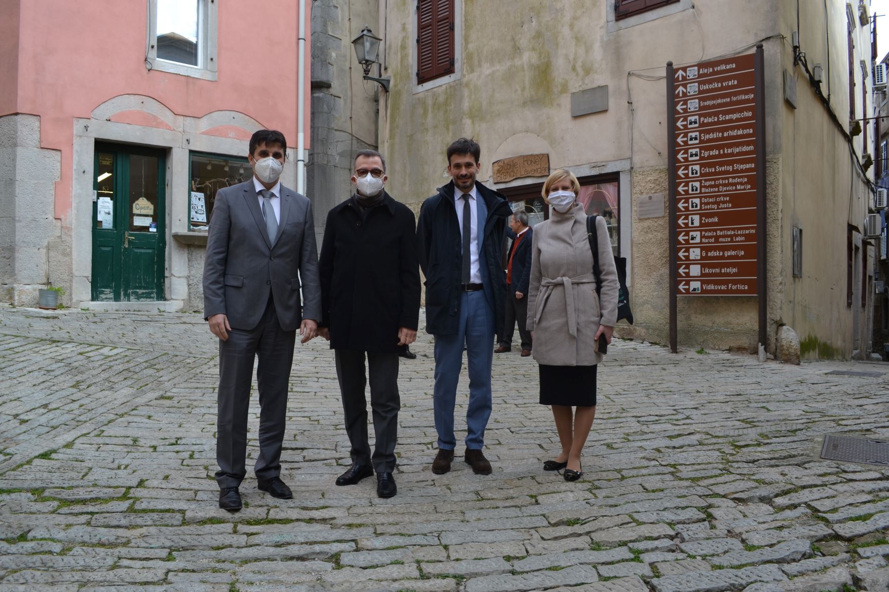 Veleposlanik Republike Italije u Hrvatskoj, Njegova Ekscelencija Pierfrancesco Sacco zajedno s generalnim konzulom Republike Italije u Rijeci Davide Bradaniniem tijekom današnjeg dana boravio je u svom nastupnom posjetu Gradu Labinu.