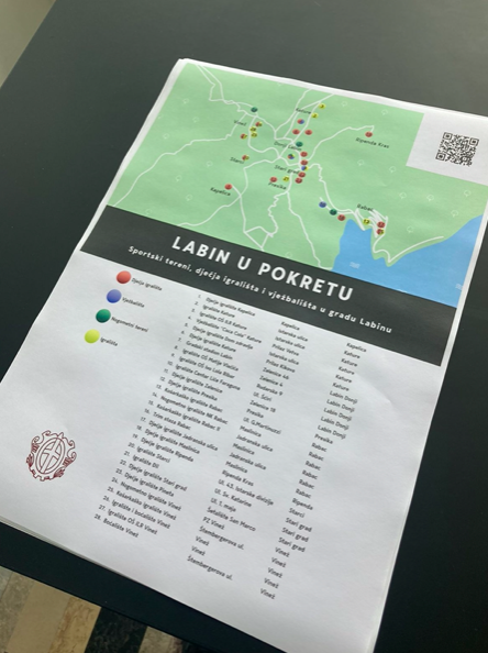 Ovom prigodom predstavljena je i grafička i digitalna mapa s lokacijama tridesetak sportskih terena, vježbališta i dječjih igrališta na otvorenom na području Grada Labina. Na svakoj lokaciji označeno je o kojoj se vrsti sadržaja radi, a u digitalnoj verziji koju se može pregledati na web adresi također su navedene adrese i prikazane fotografije lokacija, te link kojim se otvara aplikacija s kartama (poput npr. Google Maps), kroz koju se mogu preuzeti i upute.