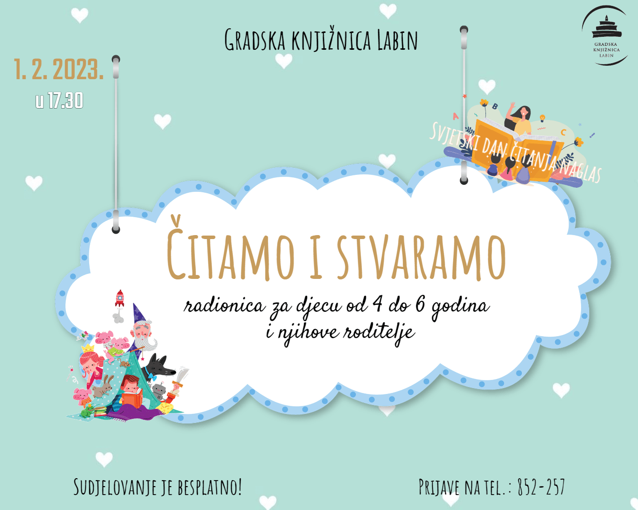 Prvo ovogodišnje druženje s djecom i roditeljima održat će se u srijedu, 1. veljače s početkom u 17.30 u Dječjem odjelu Knjižnice. Povod je obilježavanje Svjetskog dana čitanja naglas te vas, kao i uvijek, očekuje zanimljiva priča, ugodno društvo i malo kreativnog rada.