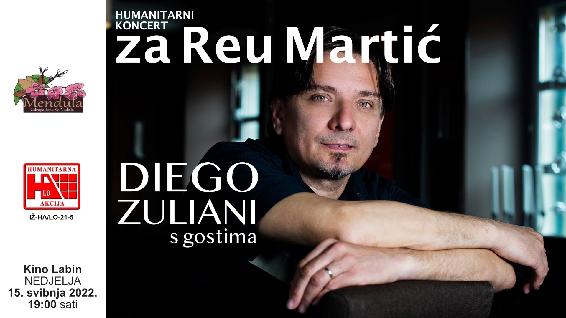 Udruga žena Sv. Nedelja „Mendula“ Nedešćina najavljuje Humanitarni koncert Diega Zulijanija s gostima u sklopu Humanitarne akcije „POTVRDIMO HUMANOST ZA REU“ .
