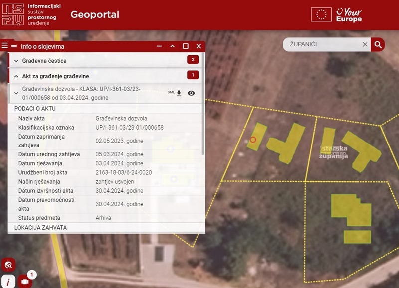 Uvidom u Informacijski sustav prostornog uređenja vidljivo je da su obje „građevine“, ako to tako smijemo uopće nazvati, 3. travnja 2024. godine, dobile građevinsku dozvolu, odnosno akt za građenje.