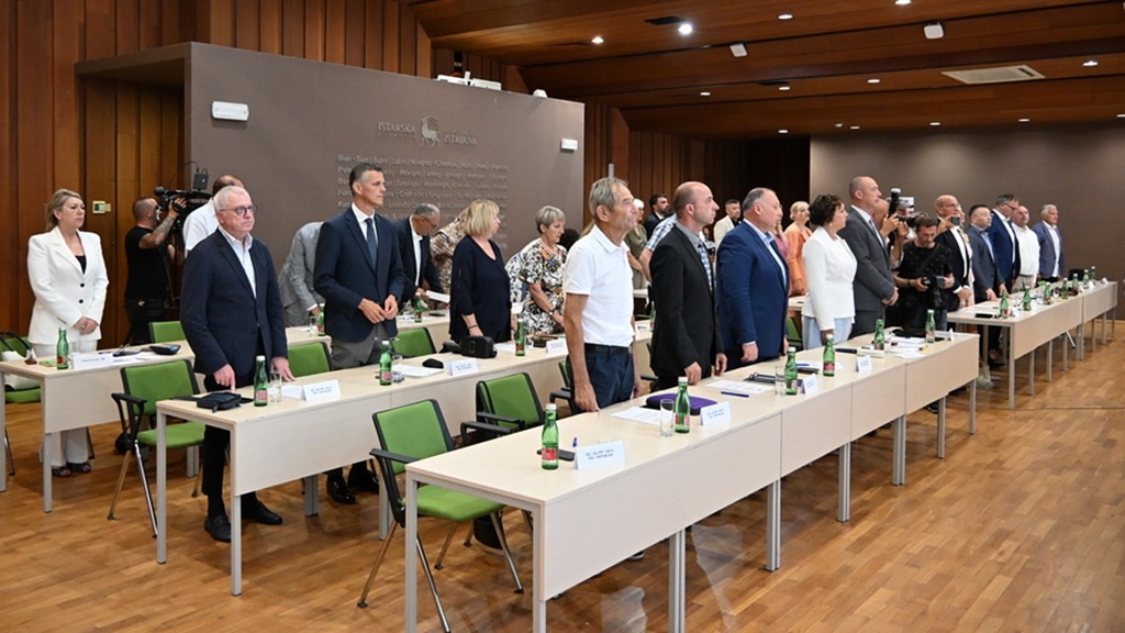 U Spomen domu, u Pazinu, danas je održana konstituirajuća sjednica Skupštine Istarske županije u mandatnom razdoblju od 2025.-2029. godine, kojom je u prvom djelu predsjedala pročelnica Stručne službe Skupštine Vesna Ivančić, a kojoj je prisustvovalo 36 od ukupno 37 vijećnika.
