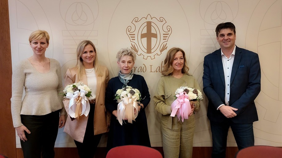 Gradonačelnik Grada Labina Valter Glavičić i zamjenica gradonačelnika Federika Mohorović Čekada u prostorijama gradske uprave održali su prijem za uspješne i nagrađivane profesorice labinske srednje škole Mate Blažina.