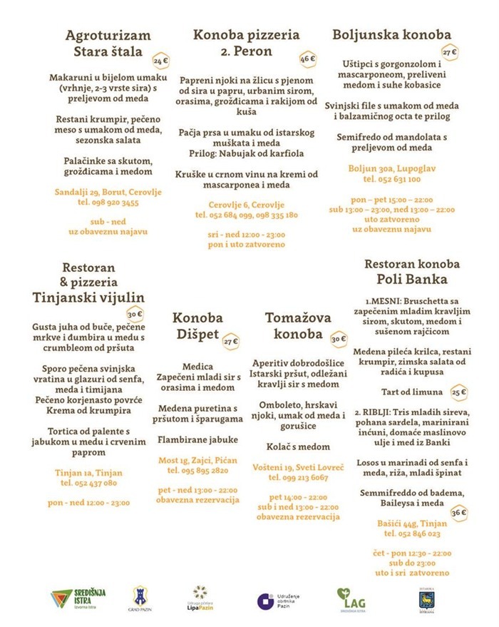 Idealna je to prilika da namirnicu kojom inače osnažujemo imunitet u doba sezonskih virusa i bakterija – med – kušate u kombinaciji tradicionalnih istarskih jela koja za vas pripremaju naši ugostitelji.
