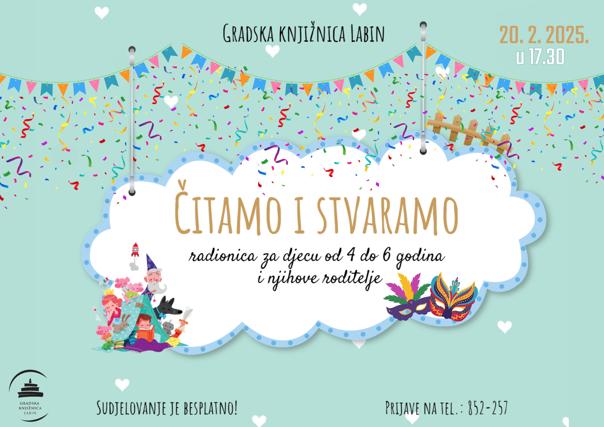 U četvrtak, 20. veljače 2025. s početkom u 17.30 u Dječjem odjelu Knjižnice očekuje vas edukativno-kreativna radionica, u okviru programa “Čitamo i stvaramo”, ovoga puta posvećena maškarama.