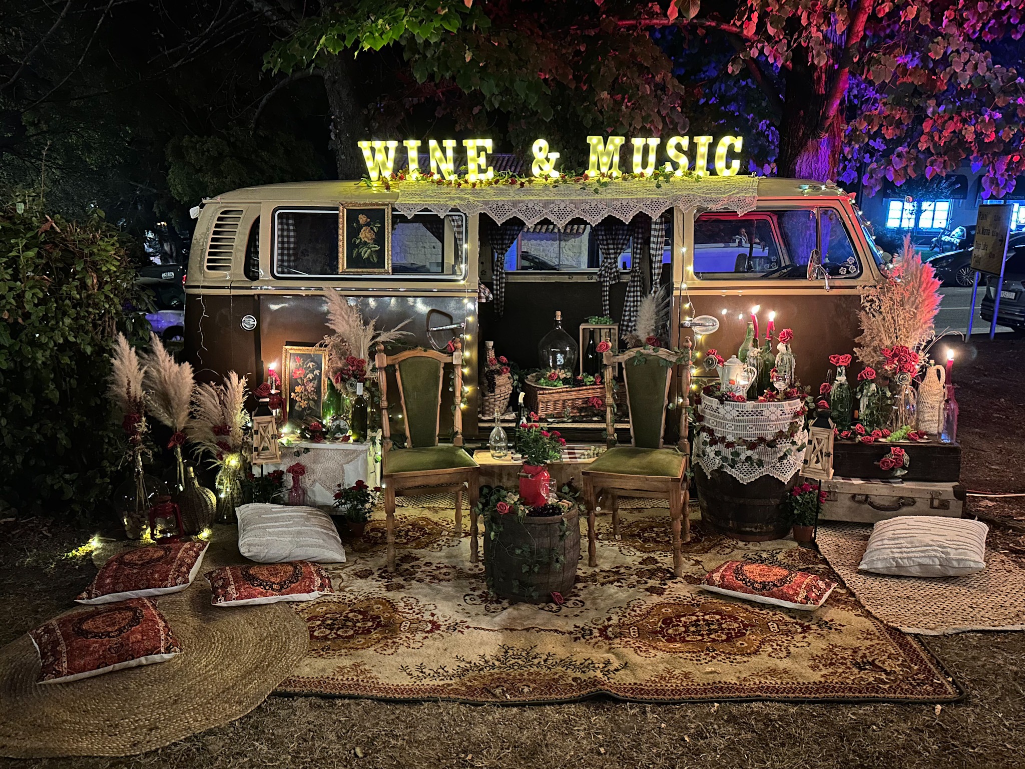 Romantična rasvjeta, dekoracije od mediteranskog bilja i iznenađenje večeri – niz crvenih ruža – pretvorili su park i ovog puta u čarobno mjesto za druženje.