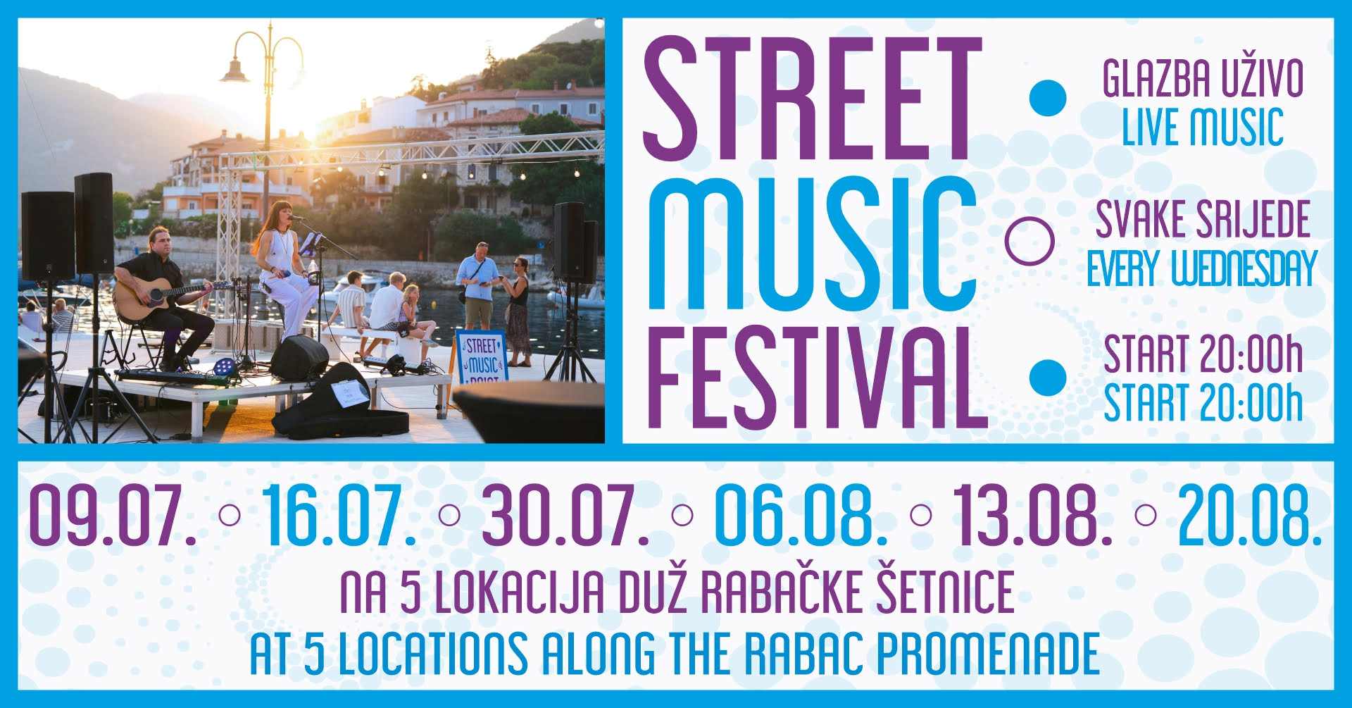 Rabac i ovog ljeta potvrđuje da svoj status bisera istočne obale Istre ne duguje samo prekrasnim plažama, već i bogatom ljetnom programu koji mami domaće i strane posjetitelje. Svake srijede od  09. srpnja do 20. kolovoza očekuju vas dobra glazba, živa atmosfera i večeri za pamćenje – stiže Street Music Festival!