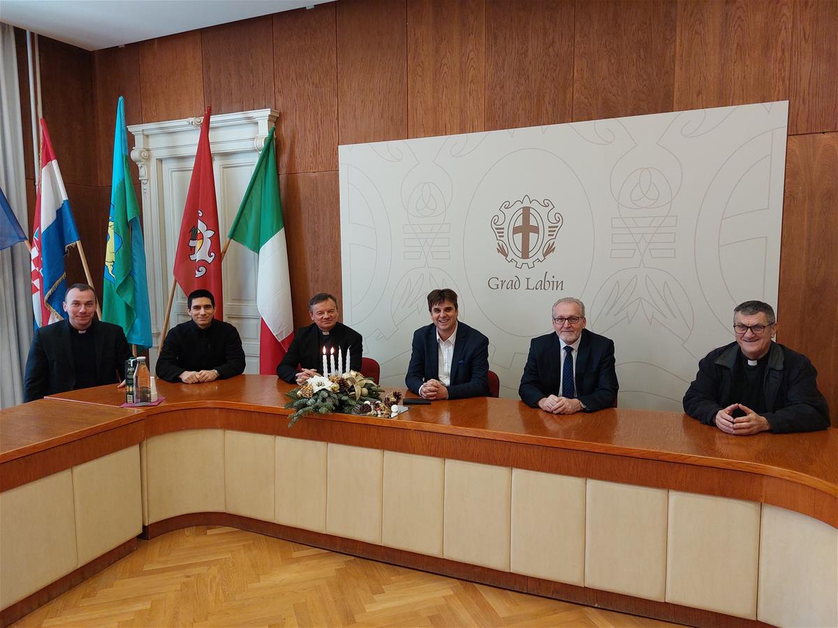 Danas su se u prostorijama Gradske uprave susreli gradonačelnik Labina Valter Glavičić i predstavnici vjerskih zajednica s područja Grada Labina vlč. Mirko Vukšić, vlč. Blaž Bošnjaković, kapelani Slobodan Rakić i Wojciech Wlazlo te labinski imam Hazim Bećirević.