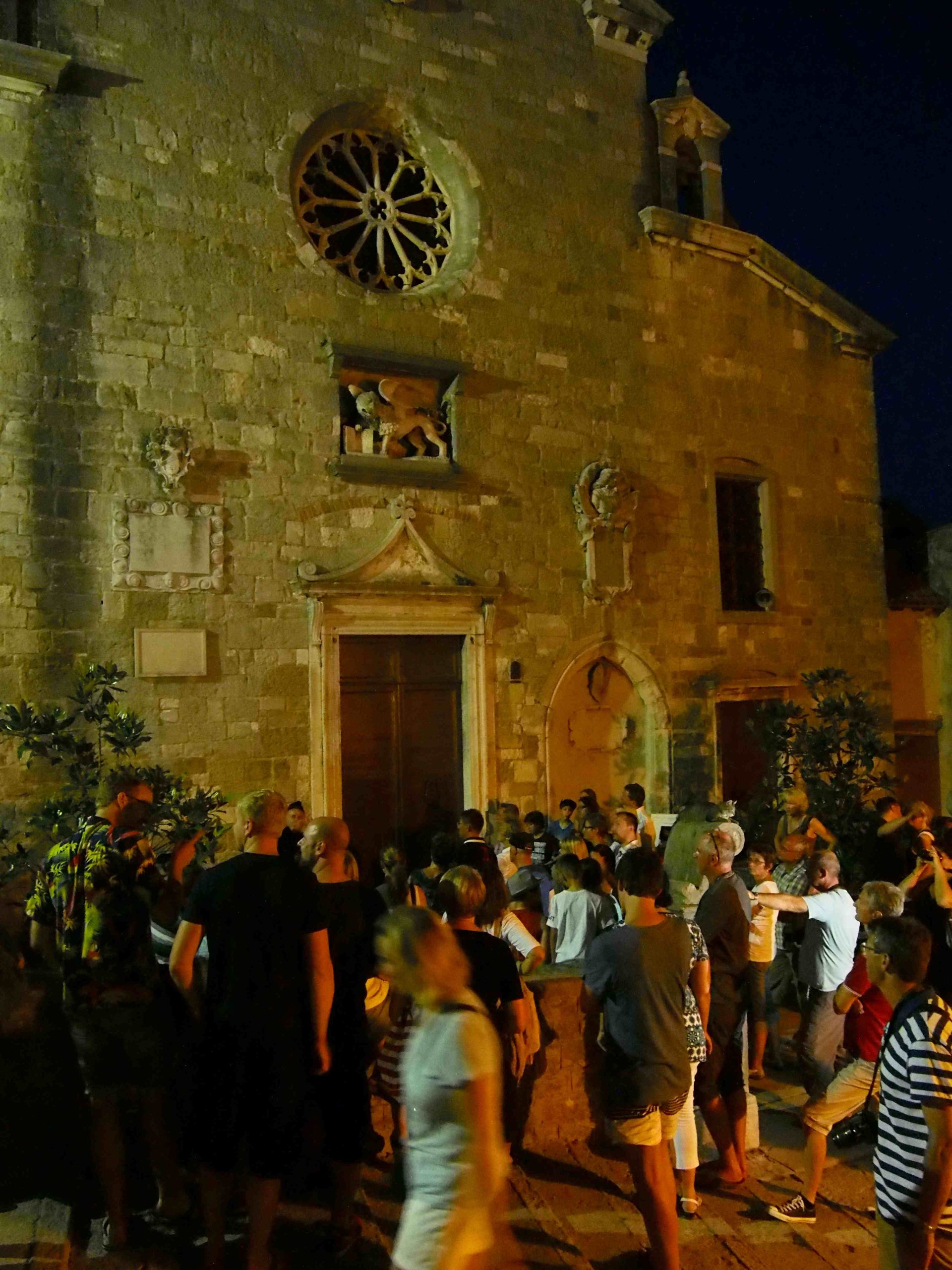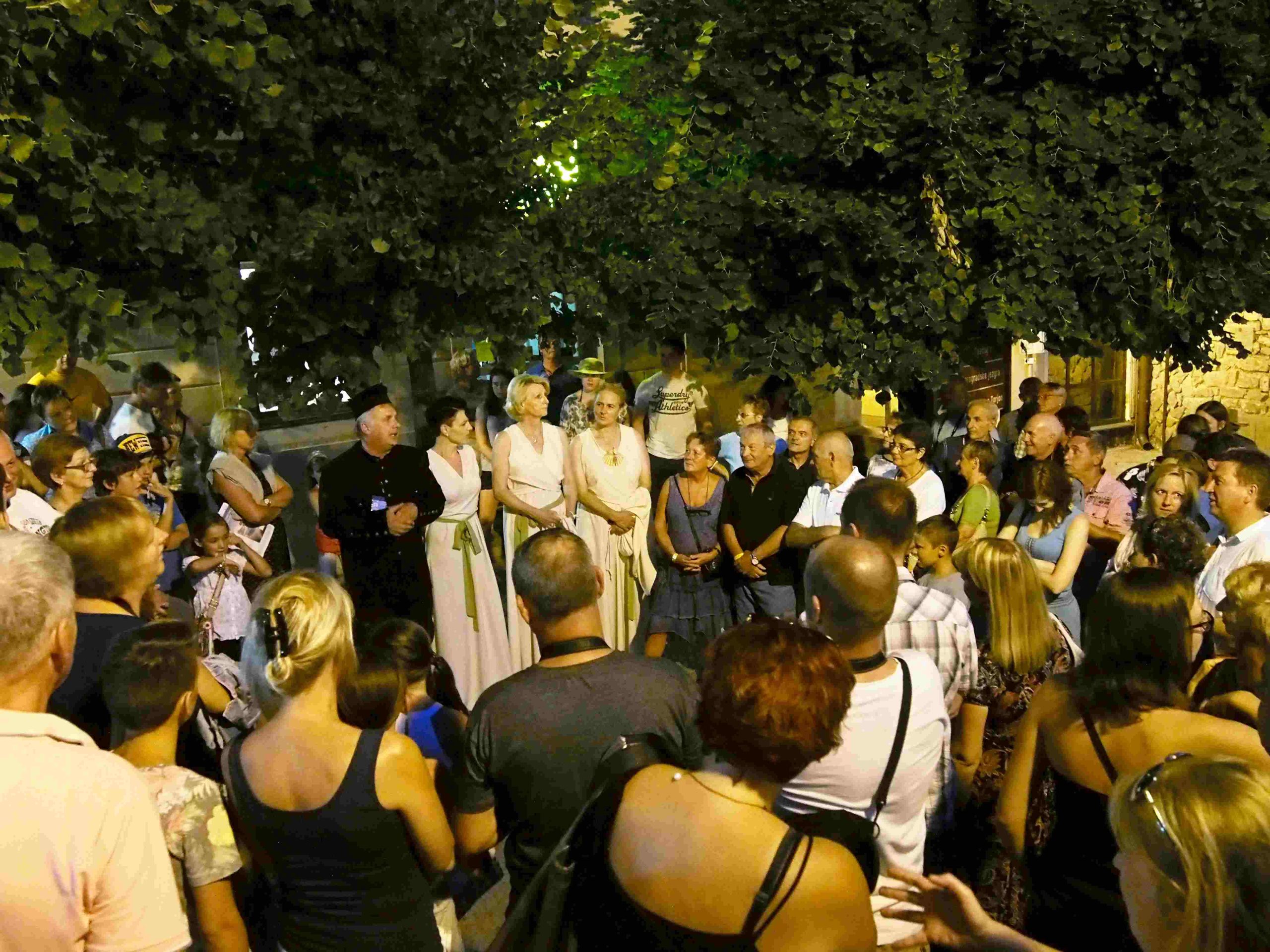 Nešto ranije, stari Labin odisao je posebnom večernjom čarolijom. Uličice obasjane svjetlima bile su kulisa za priče o gradskim legendama, uskocima, Matiji Vlačiću Iliriku, rudarskoj pobuni i plemićkom životu – sve ispričano iz prve ruke vodiča koji za tu priliku preuzimaju uloge likova iz prošlosti. Povijest nikad nije bila bliža i življa nego pod ljetnim nebom, uz šapat kamenih zidina i miris borova.