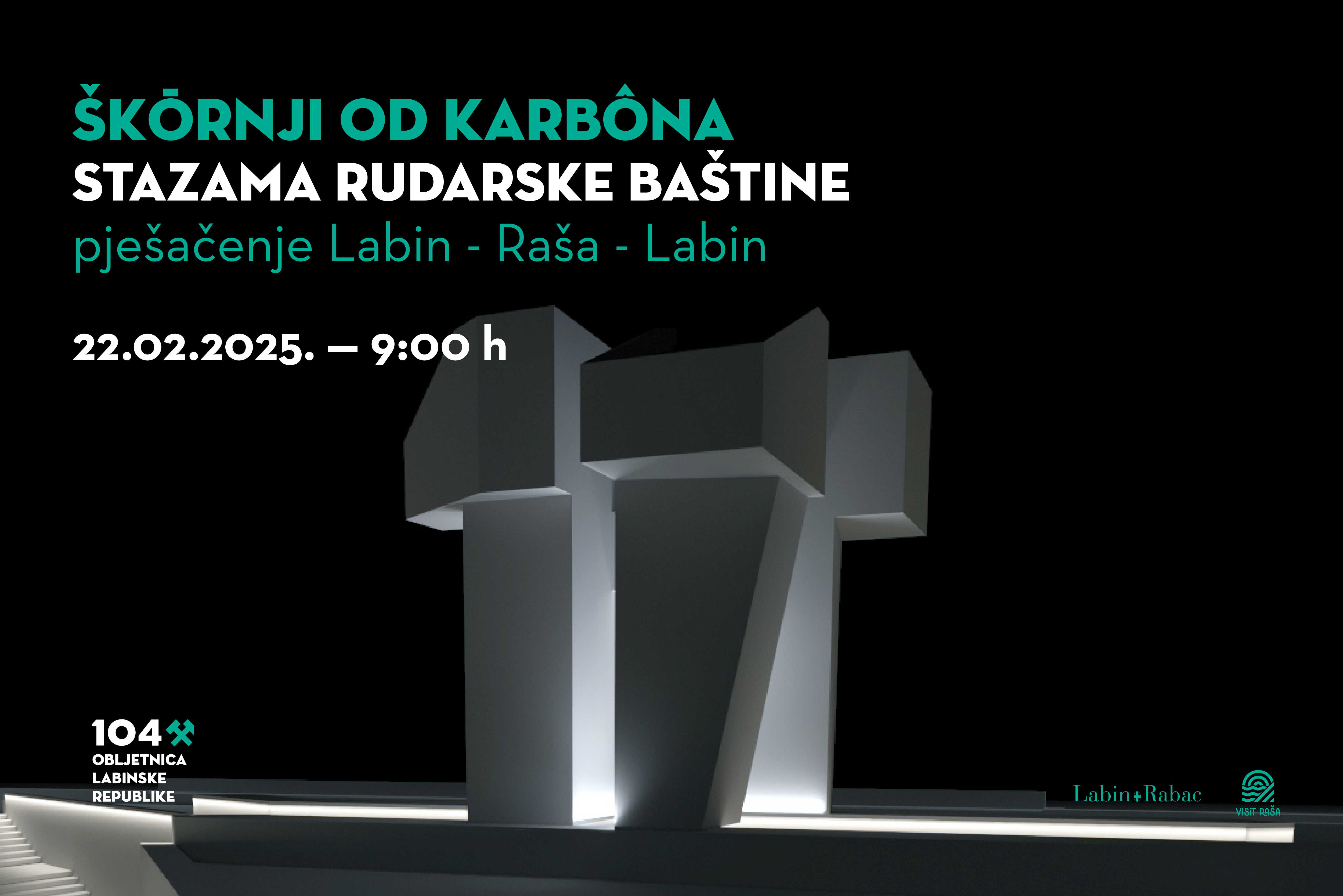Povodom obilježavanja 104.  Labinske republike, Turistička zajednica Grada Labina i Turistička zajednica Općine Raša, pozivaju vas u subotu, 22.02.2025., na besplatno pješačenje Stazama rudarske baštine koje vas iz Labina vode do Raše, najmlađeg grada u Istri i natrag do Labina. Kroz pješačenje će vas na drugačiji način, već tradicionalno, kroz priče i razne zanimljivosti, provesti vodičkinja Kristina Načinović Jakovčić.