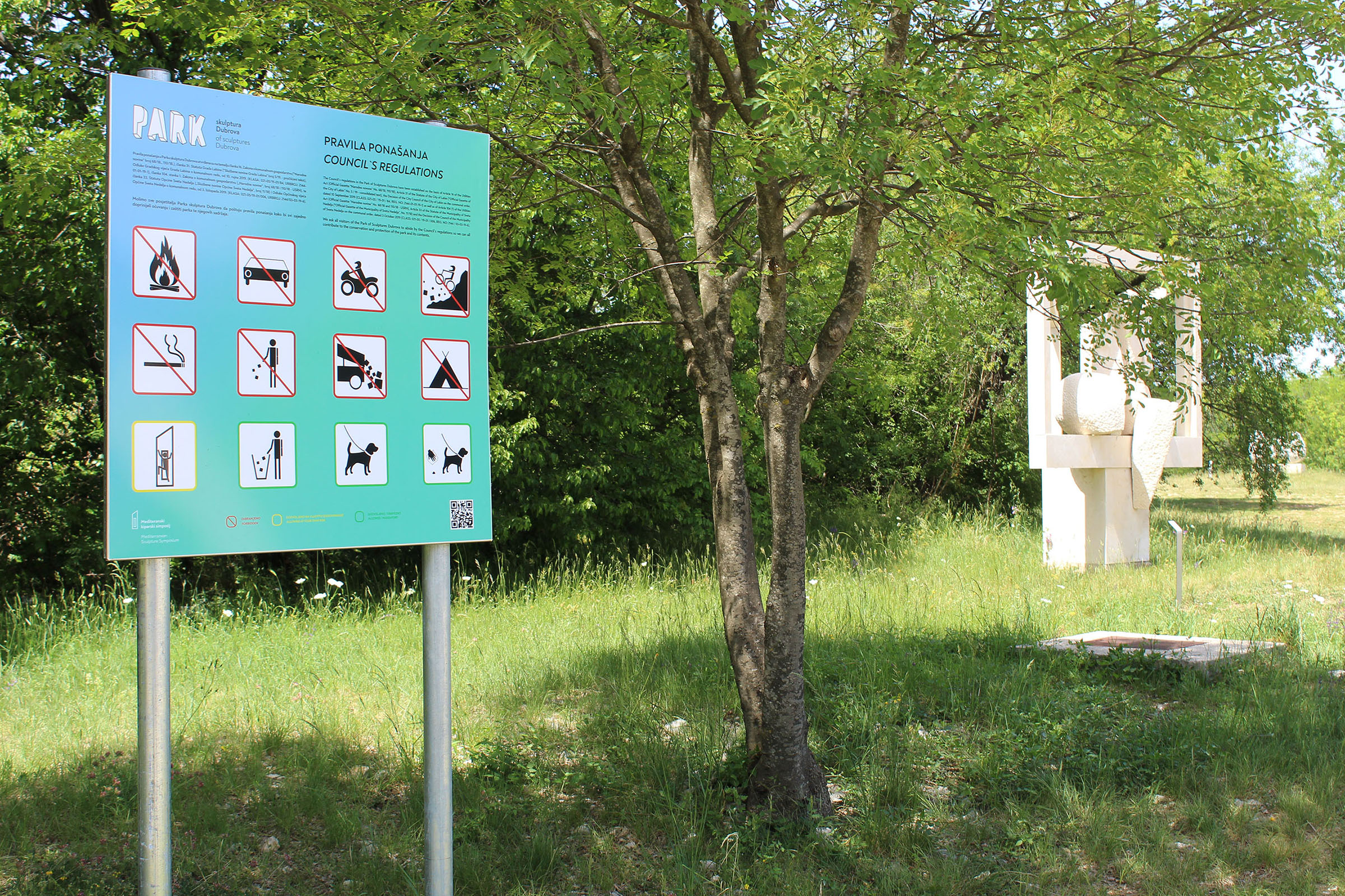 Nažalost, primijetili smo da zbog povećanog korištenja prostora dolazi i do povećanog stvaranja smeća te se time umanjuje doživljaj boravka u Parku. S obzirom na to da se o Parku brine Udruga Mediteranski kiparski simpozij tj njeni članovi, koji svojim volonterskim radom čine ovaj Park ljepšim mjestom za boravak, odlučili smo se na izradu i postavljanje tabli o pravilima ponašanja kako bi još jednom ukazali na važnost zaštite prostora i umjetničkih dijela.