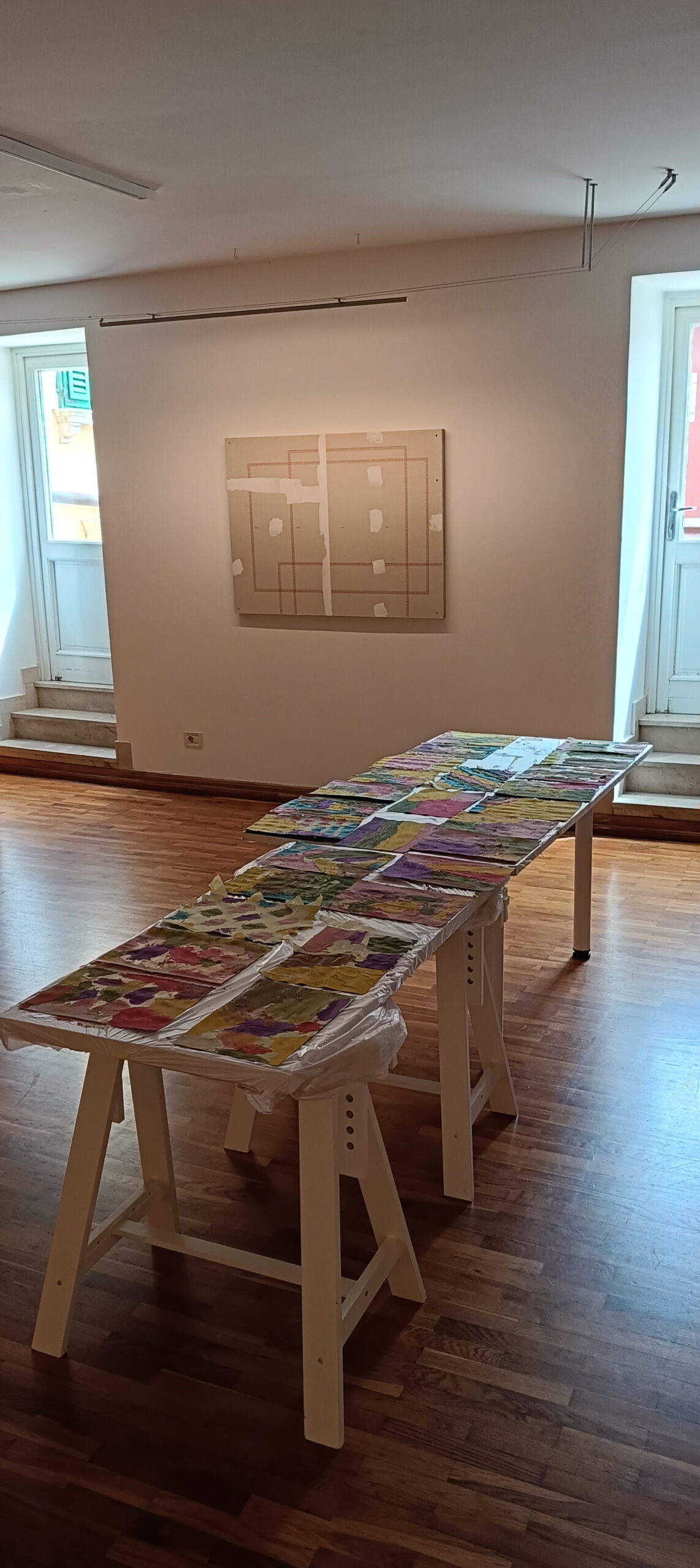 Muzejska pedagoginja Manuela Zupan provela je radionicu i vodstvo izložbom za treće razrede Osnovne škole Matije Vlačića unutar ovogodišnjeg edukativnog koncepta Prostor iz perspektive umjetnika, popratnom uz galerijski izložbeni program. Učenici su u pratnji učiteljica Martine Augustinović i Nensi Zgrablić otkrivali drugačiji način gledanja izložbenog prostora koji Eškinjinom intervencijom postaje integralni dio umjetničkog rada, a potom i sami isprobali eksperimentiranje tehnikama i materijalima kroz kreativnu radionicu.