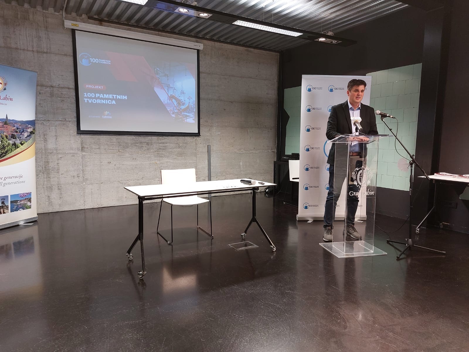 Gradonačelnik Grada Labina Valter Glavičić, u pozdravnoj riječi zahvalio se tvrtki Culmena koja je iskazala interes za prezentaciju u Labinu, te dodao kako su ovakva događanja sjajna prilika za razgovor i za promišljanja, jer prilike su ogromne, novac je osiguran putem fondova Europske komisije, ali da bi se taj novac privukao i uložio na pravi način, potrebne su puno jače pripreme. „Tranzicija koja se još uvijek događa u većini hrvatskih gradova, je iza nas. Labin je spreman za drugu fazu. Ići u zeleno, digitalno, nešto je o čemu svi pričaju, ali nisam siguran koliko razumiju. Mi u Labinu ne želimo da nam djeca budu rentijeri, zato nam figurativno treba „100 pametnih tvornica“, odnosno puno više pameti i snage u dugoročnoj viziji i razvoju pametnih industrija. Samo po površini manji, ali po ljudima koji tu žive ili koji su odlučili, živjeti u Labinu i pridonijeti našem zajedničkom razvoju, Labin je bitan kotačić u cijelom mehanizmu razvoja pametnih industrija u Hrvatskoj”, izjavio je Valter Glavičić.