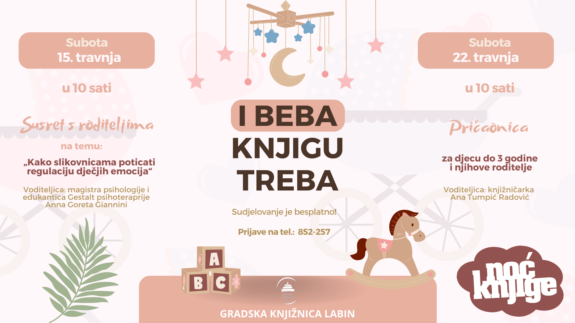 U sklopu programa za najmlađe „I beba knjigu treba“ Gradska knjižnica Labin organizira u travnju dvije aktivnosti.