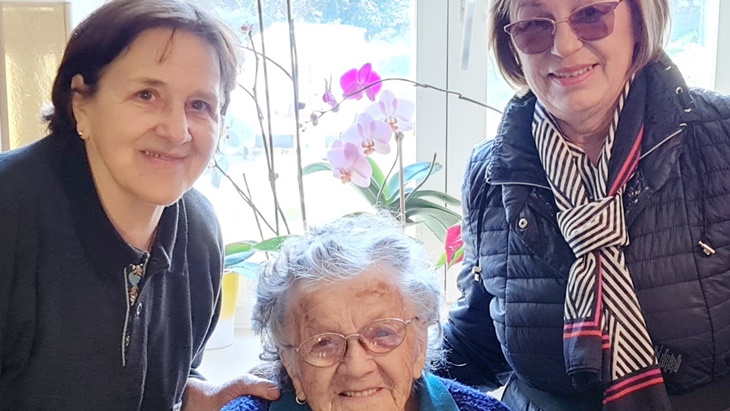 U spontanom i srdačnom druženju s našim članicama, Linom Vlačić i Denis Baškera, koje su joj u ime Udruge “Mendule” predale prigodan buket cvijeća, prisjetila se davnih vremena.