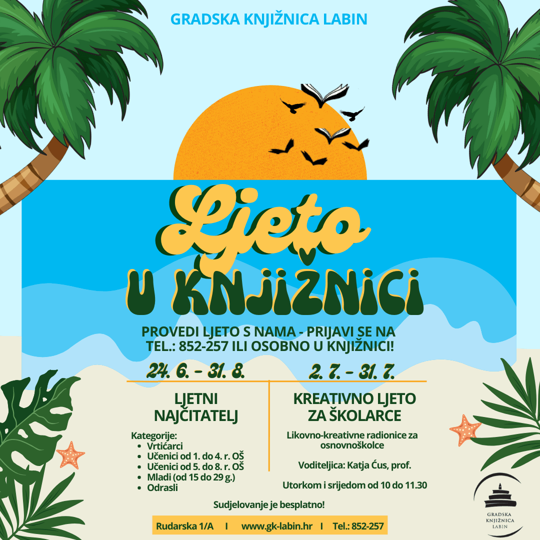 Sa završetkom školske godine i dolaskom toplih ljetnih dana već tradicionalno počinje Ljeto u Knjižnici, program Gradske knjižnice Labin koji iz godine u godinu okuplja mlade kreativce, ali i čitatelje različite dobi koji se ne libe uhvatiti u koštac s čitalačkim izazovima.