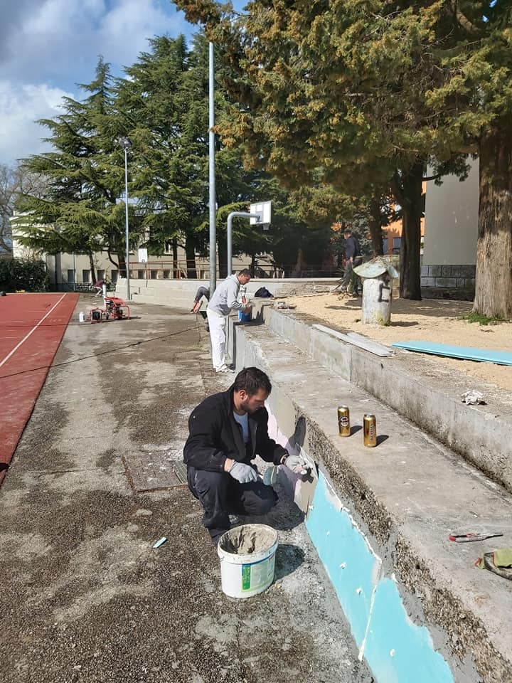 Subotnje jutro je proteklo radno na području Mjesnog odbora Donji Labin. Naime, dečki iz kvarta su danas opet imali veliku radnu akciju uređenja igrališta u dvorištu OŠ “Ivo Lola Ribar”.