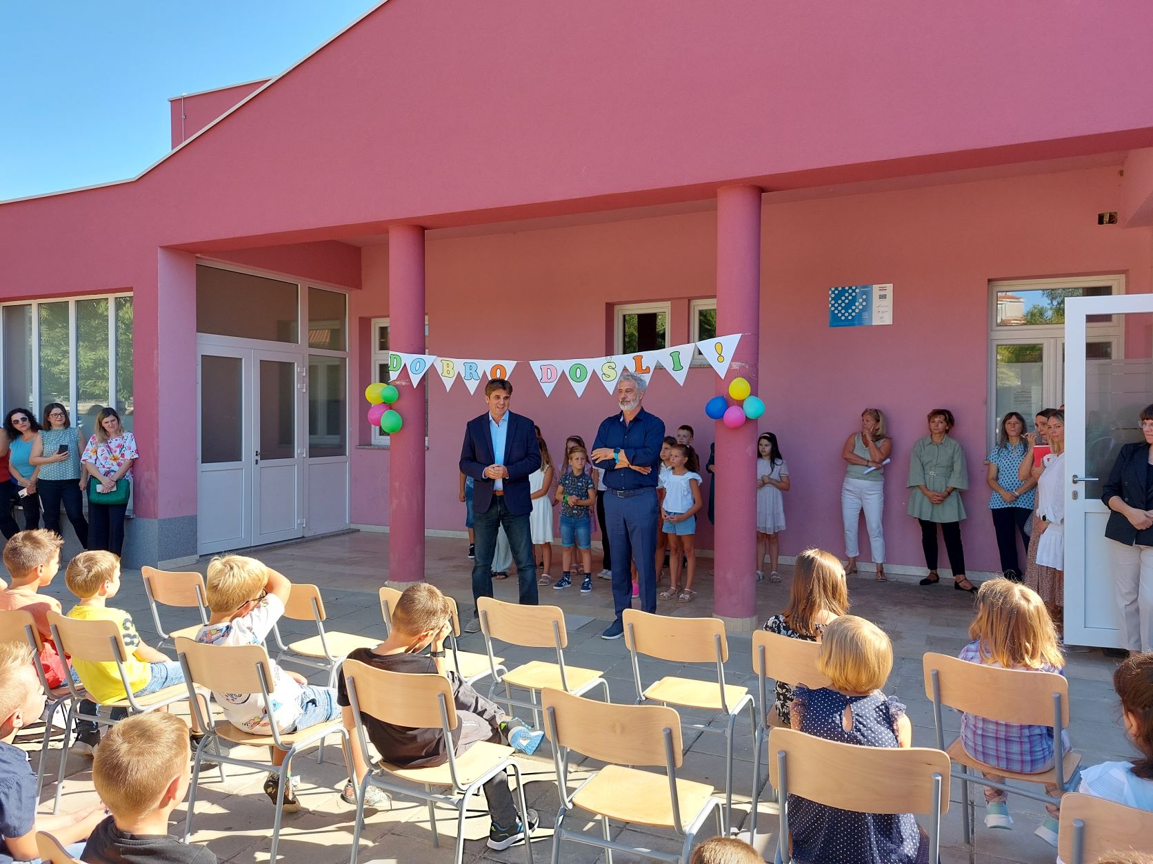 Prvašiće su na njihov prvi dan posjetili te podršku pružili i gradonačelnik Valter Glavičić i pročelnik Upravnog odjela za društvene djelatnosti Grada Labina, Borjan Batagelj koji su im zaželjeli puno radosnih trenutaka, druženja i učenja u novoj školskoj godini.