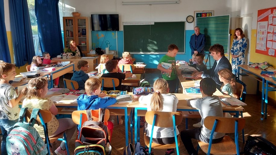 Ovom prilikom Gradonačelnik je u druženju sa profesorima, ravnateljima, ali i djecom naših škola, u opuštenoj i neformalnoj atmosferi popričao o raznim planovima i investicijama koje je Grad Labin realizirao te planovima za naredno razdoblje, a s mališanima u OŠ Matije Vlačića sudjelovao je i u nastavi – na satu hrvatskog jezika.