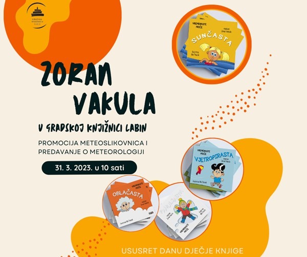 Međunarodni dan dječje knjige obilježava se svake godine 2. travnja, na dan rođenja književnika Hansa Christiana Andersena, da bi se istaknulo koliko su knjige za djecu važne u njihovu odrastanju, a Gradska knjižnica Labin obilježit će ga u petak, 31. ožujka 2023. uz posebnog gosta, poznatog meteorologa Zorana Vakulu, koji će ovom prigodom prvašićima labinskih škola predstaviti svoje četiri meteoslikovnice iz serije Vremenaste priče – Vjetropirasta, Oblačasta, Sunčasta i Pahuljasta.