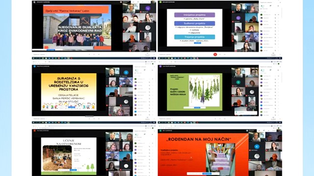 U dva uzastopna popodneva, svoje je projekte i primjere dobre prakse prezentiralo desetero odgojiteljica. U ponedjeljak je odgojiteljica Rea Radin prezentirala projekt „Morski pas“, odgojiteljice Katarina Đapić i Tina Šegan projekt „Učenje na otvorenom“, a odgojiteljice Silvija Stojšić i Sanja Peršić Verbanac „Suradnju s roditeljima u uređenju vanjskog prostora“.