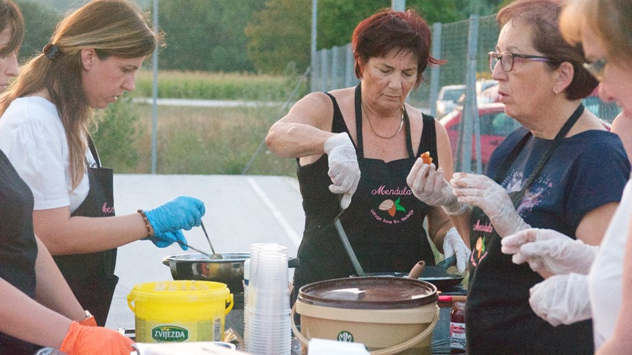 Ugostiteljska ponuda je bila standardna, ali treba spomenuti i udrugu žena Mendula koja je za okupljene spremala palačinke i fritule koje su, kao i gotovo na svakoj fešti, bile apsolutni hit, a sav je prihod ide prema Davidu Mohoroviću.